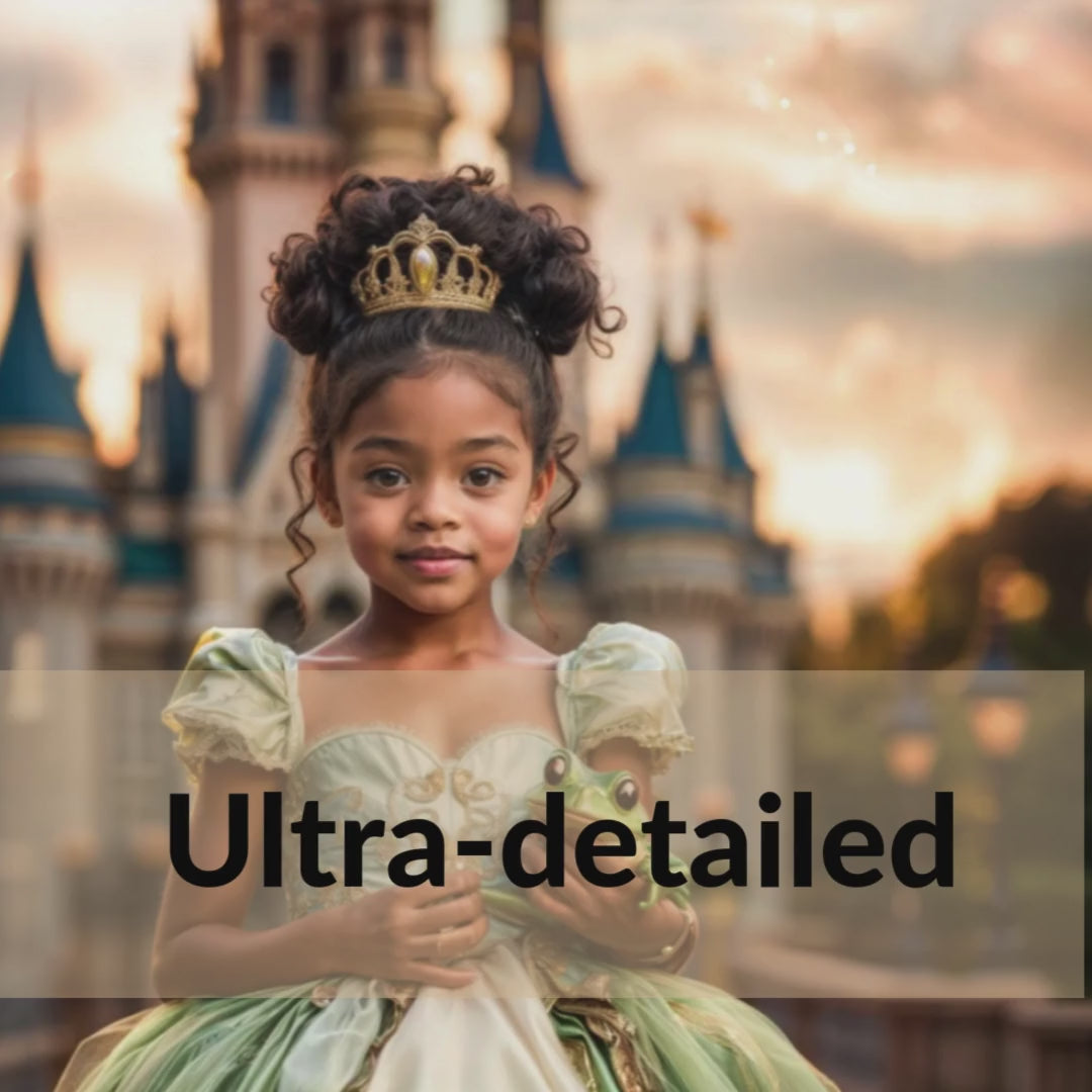 Transform your child into a magical princess with our custom portrait art.