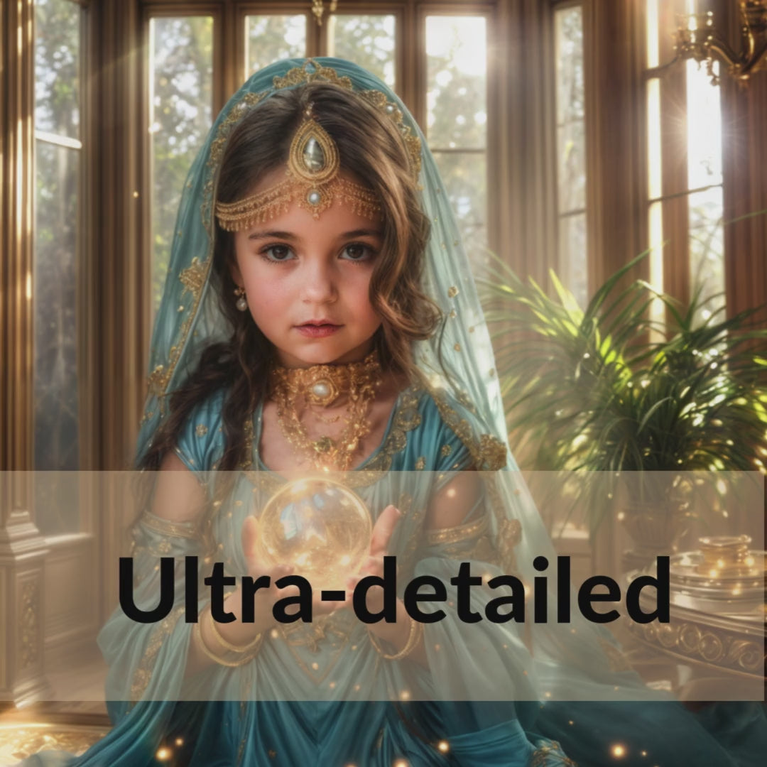Transform your child into a magical princess with our custom portrait art.